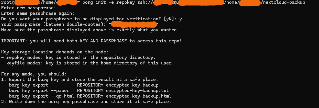 borg init -e repokey ssh://draconis@192.168.21.105:22/backup/colmaris