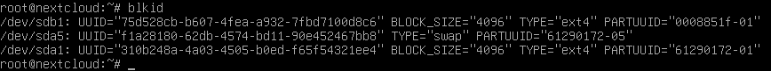 UUID=75d528cb-b607-4fea-a932-7fbd7100d8c6 /mnt/nc-data ext4 defaults 0 0